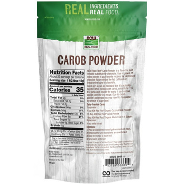 NOW Real Food Carob Powder is a flavorful and versatile substitute for chocolate. Use in place of cocoa powder in your favorite recipes for delicious natural chocolate flavour without the fat, caffeine or theobromine found in chocolate. At NOW the commitment is to quality, natural and organic ingredients, flavors and so much more.