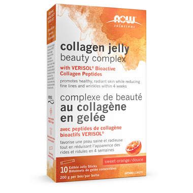NOW Solutions Collagen Jelly features VERISOL Bioactive Collagen Peptides, which have clinical studies demonstrating when taken for at least 4 weeks, can positively influence skin elasticity, resulting in the reduction of fine lines and wrinkles. Other studies show VERISOL may help maintain strong hair and nails when taken for at least 6 months. With 10 portable jelly sticks per box, this unique beauty supplement provides nutrients to support skin health from within.