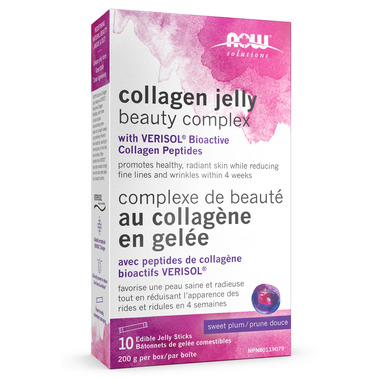 NOW Solutions Collagen Jelly features VERISOL Bioactive Collagen Peptides, which have clinical studies demonstrating when taken for at least 4 weeks, can positively influence skin elasticity, resulting in the reduction of fine lines and wrinkles. Other studies show VERISOL may help maintain strong hair and nails when taken for at least 6 months. With 10 portable jelly sticks per box, this unique beauty supplement provides nutrients to support skin health from within.