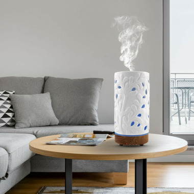 NOW Solutions Ultrasonic Ceramic Stone Oil Diffuser is made of natural clay and uses high frequency ultrasonic electronic technology that vibrates water inside the unit into an ultra-fine mist, which helps to maintain essential oil integrity and holistic properties. When your favourite essential oils are added, they are immediately dispersed into the air, providing immediate healthful benefits while helping to ionize the air.