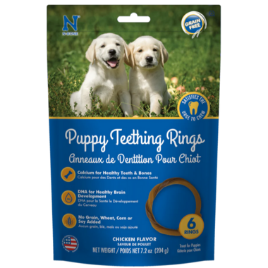 NPIC N-Bone Puppy Teething Rings are easy for floppy puppy paws to hold onto and provide a soothing and appropriate outlet for chewing. Formulated with DHA and calcium to support your puppy’s unique nutritional needs, our delicious chicken flavored rings are pliable and won’t damage immature teeth. Helps relieve teething pain and soreness Edible and digestible Added Calcium for healthy teeth and bones Fortified with DHA Omega 3 fatty acids Made in the USA! About 4 inches in diameter