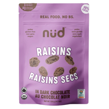 Raisins* (sunflower oil*), Cacao*. *Organic.