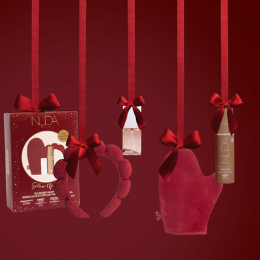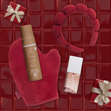 This exclusive set features NUDA's cult favourite sunless essentials: CloudMist Face Tan Water in the shade Light to Medium, BronzeFoam Self-Tanning Mousse Dark for a natural glow and two limited-edition accessories in an elegant Red Velvet Color: Tanning Applicator Mitt & GRWM Headband. The essentials for a flawless, streak-free tan all wrapped up in one ready-to-gift set.