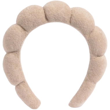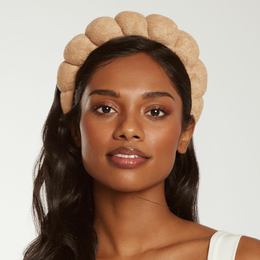 Nuda's GRWM Terry Headband in Caramel is perfect for keeping hair away from your face during skincare, makeup, or face tanner application. Made from ultra-soft, absorbent terry cloth, this beige headband offers a comfortable, adjustable fit for all head sizes. Enhance your daily beauty routine with this stylish and functional accessory.