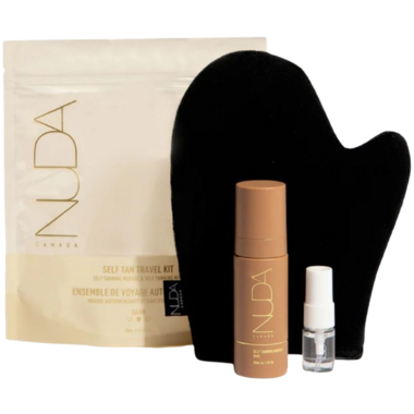 Nuda's Self-Tan Travel Kit provides everything you need for a natural, streak-free tan on the go.