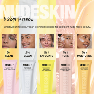 Follow with Nudeskin 5% Citrus Fruit and Glycolic Glow Toner and Nudeskin Citrus-C Mask & Daily Moisturizer.