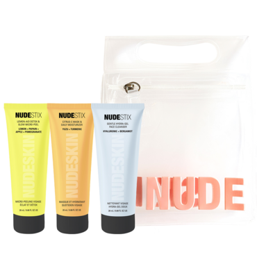 A travel size set of 3 Nudeskin products from Nudestix's new skincare line.