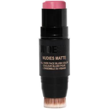 Directions: On bare skin, swipe NUDIES MATTE ALL-OVER FACE BLUSH STICK on eyes, cheeks and lips directly from the color stick then stipple in a patting motion on your face with a blending brush or your fingers to blend out any hard edges. Over makeup, swipe fingers or makeup brush onto the balm sticks then apply on eyes, cheeks and lips with a brush or fingers and stipple in a patting motion to blend out hard edges to get the best results.
