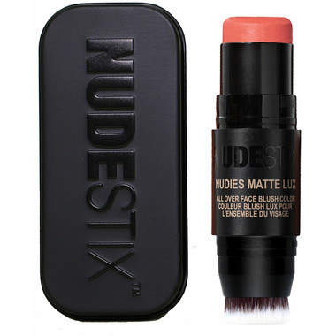 - On Bare Skin: Swipe NUDIES MATTE LUX ALL-OVER FACE BLUSH COLOR on cheeks and lips directly from the color balm stick then stipple in a patting motion with blending brush or fingers to blend out any hard edges.