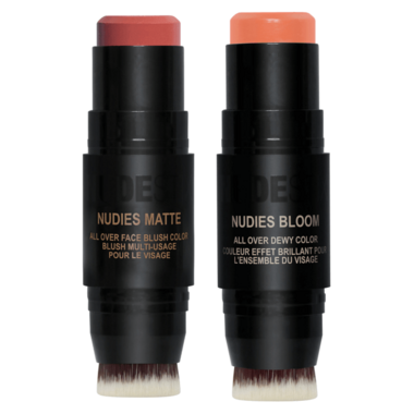 Containing NUDIES MATTE BLUSH in limited edition shade Body Language, (dusty nude rose) an exclusive universal shade created by Hilary Duff and NUDIES BLOOM in Sweet Peach Peony (soft peach)!
