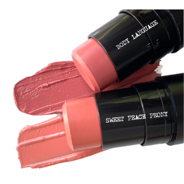 Directions: 1.Swipe BODY LANGUAGE on cheeks, eyes, and lips then stipple in a patting motion with blending brush or fingers to blend out edges.