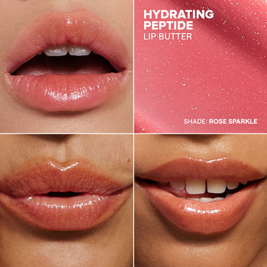 Formulated clean and vegan for a pop of sheer, translucent color that is lit from within. HYDRATING PEPTIDE LIP BUTTER works its magic for super soft and nourished lips. A tinted glossy lip balm with natural avocado and shea butters to keep lips ultra-hydrated as well as lip plumping peptides that increase lip fullness. The rose-pink tint with a touch of gold sparkle adds a beautiful, glossy finish to your lips and provides your daily dose of lip love.