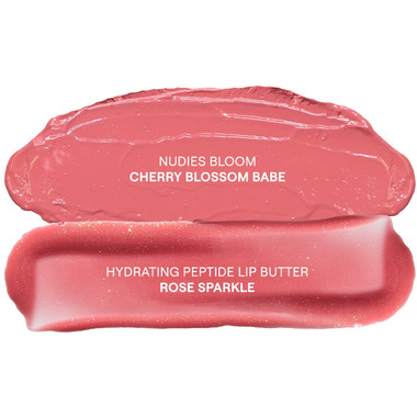 Featuring NUDIES BLOOM ALL OVER FACE DEWY COLOR in CHERRY BLOSSOM BABE (cool fresh rose) and the HYDRATING PEPTIDE LIP BUTTER in ROSE SPARKLE (soft rose gloss tint with gold shimmer), this kit ensures your complexion looks juicy, luminous and fresh. Designed to provide a glowing, rosy sheen from sunrise to sunset, this set keeps you radiant and refreshed for every occasion. Embrace the joy and glow of the season with a touch of rosy brilliance!