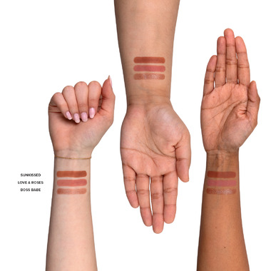 Create multiple makeup looks for face, eyes and lips with two blurring, matte blush balms and one iridescent shade for a warm and sunny beachy bronzed complexion.