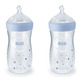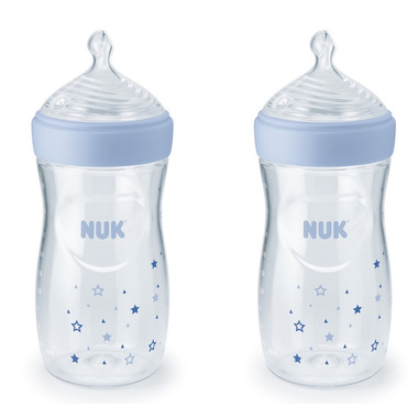Now your baby can transition from breast to bottle in a natural way with the NUK Simply Natural Bottles. Designed to mimic the fit, flow, and movement of mom as closely as possible, this is the only bottle with up to 9 nipple holes, just like mom. This provides a natural feeding experience to ensure the mom-baby bond remains strong. NUK Simply Natural bottles feature a super-soft nipple that mimics the shape of mom's breast while breastfeeding. The scoop nipple cavity allows space for baby's tongue and jaw to move naturally, just like they do when breastfeeding. Now NUK Simply Natural bottles feature SafeTemp technology, which lets you know when milk is too hot. The blue thermometer indicator fades when milk is too hot and reappears when milk has cooled and is safe to drink.