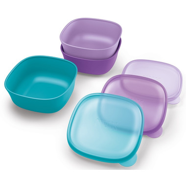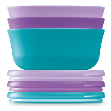 From baby food to toddler snacks, NUK stacking bowls are great for every feeding stage. High walls and a curved base make scooping food easier; ideal for both parent and baby-led feeding. These travel friendly bowls come with matching leak-proof lids and can easily go from diaper bag to daycare and everywhere in between. Microwave-safe for warming up meals and top rack dishwasher-safe for fast, parent-friendly cleanup. Plus, bowls and lids are BPA-free for total peace of mind.