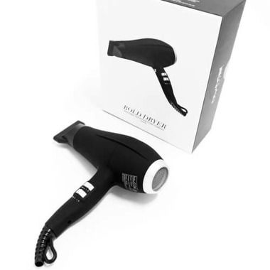 The Bold Hair Dryer is ergonomically designed with a pure ceramic grill and is equipped with negative ion conditioning, far infrared heat, two temperature settings, two speed settings, one detachable concentrators and a cool shot button. These innovative technologies work together to give you lasting blowouts with incredible shine and volume every time. Safe for all hair types.
