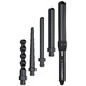 The versatile 5-in-1 Lustrum includes five barrels, giving you multiple options for fabulous curls and waves. The 8-piece set consists of the 19mm, 25mm, 32mm, 25mm Cone, and Pearl barrels to achieve styles that match your every mood, as well as a heat-resistant styling glove and roll-up organizer.