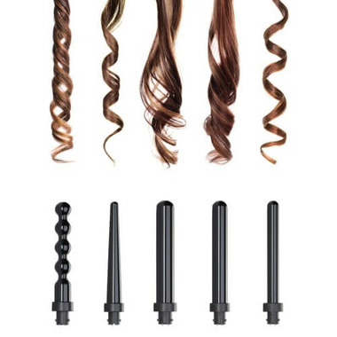 The 5-in-1 Lustrum set features five barrels and an interchangeable base for limitless curls. Get smooth, hydrated, glamorous hairstyles with added volume that lasts. Every curl with these tourmaline ceramic barrels protects your strands with a far infrared heat and negative ions that coat hair for a frizz-free finish and brilliant shine.