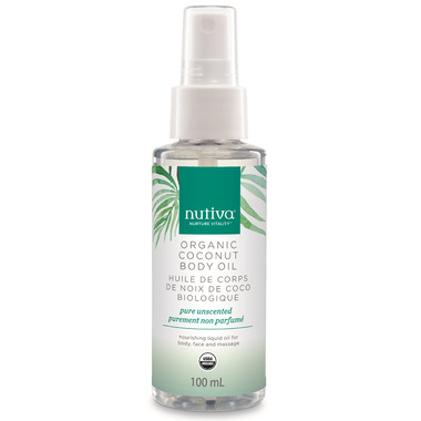 Nutiva Organic Coconut Body Oil Pure Unscented is a nourishing liquid oil for your body, face and massage.