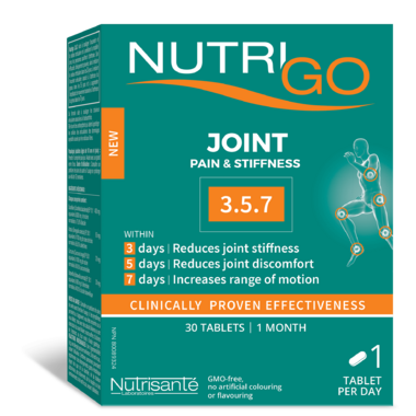 NutriGO 3.5.7 is clinically proven to be effective in reducing joint stiffness within 3 days, to reduce joint discomfort associated with osteoarthritis of the knee within 5 days, and to increase range of motion associated with osteoarthritis of the knee within 7 days.