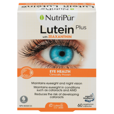 Nutripur Lutein Plus For Eye Health with Bilberry extract, Blueberry and Vitamin A maintains eye health and night vision.  Has been proven to maintain healthy vision and counter the effects of macular degeneration and cataracts.