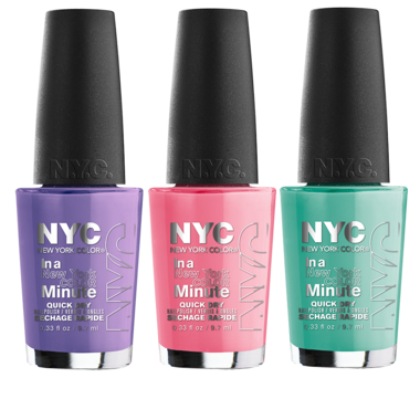 NYC's In a New York Color Minute nail polish is slick, glossy polish that goes from wet to set in less than 60 seconds with a special control-flow brush that dispenses just the right amount of color for perfect application…even if you need to apply while heading across town in a taxi.