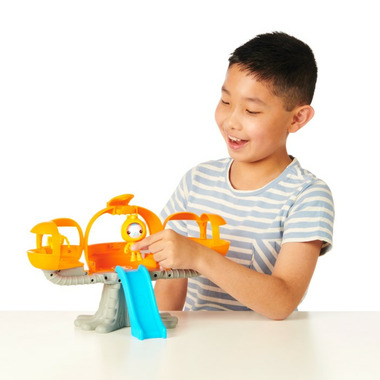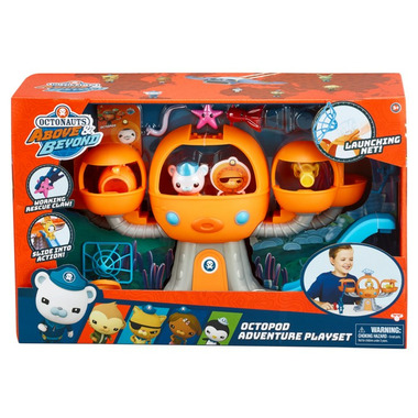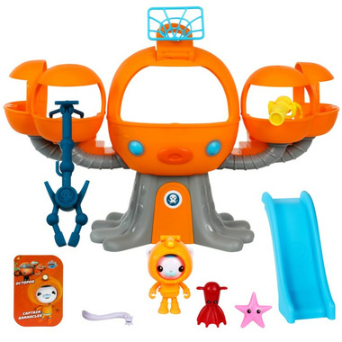 Adventure Above & Beyond with the iconic Octocrew HQ - the Octopod Playset. The Octopod is the perfect home for your Octocrew, Gups & Terra-Gups and features a Net Launcher that can be launched from the top of the Octopod or removed for launching away from the HQ! There is also a Claw that attaches to the Figures to rescue creatures and also comes with a Spyglass accessory. Slide into action down the Slide with the 3" Captain Barnacles Action Figure! He is wearing his exclusive Deep Sea Diving Suit and removable Deep Sea Helmet. The Playset also features 3 Creatures (Vampire Squid, Starfish, Slime Eel) and a Mission Card to create your own adventure. All pieces work with other Octonauts Playsets, Figures & Vehicles. Collect them all and build up the world of The Octonauts at home!