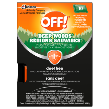 Don't let mosquitoes keep you and your family from enjoying the outdoors. OFF! Deet-free wipes contain a plant-based repellent which provide effective protection from black flies, gnats, no-see-ums and mosquitoes. Deet-free.