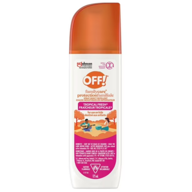 Experience OFF! with a refreshing, light scent. OFF! Family Care Tropical Fresh contains aloe vera and repels mosquitos, black flies, stable flies, ticks, chiggers, biting midges and deer flies. This long-lasting formula protection that goes on dry and doesn’t stain. This insect spray is formulated with 5% DEET and provides up to 2 hours of protection. Ideal for backyard, beach, gardening, picnicking, playing and relaxing. Keep out of reach of children and pets. See the label for other precautions and usage directions.