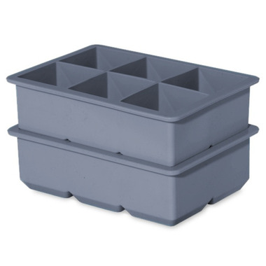 Cube Tray, set of 2, blue, silicone. Makes six 5cm (2') generously sized, perfectly square cubes. Individual cubes easily pop out without having to twist and crack the tray. Raised lip funnels any extra water into the tray without spilling.