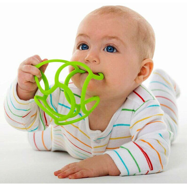 Rated 5 out of 5 by from Great for teething baby! My little one loves chewing on this ball. And it’s super easy for her to hold and slips onto her wrist which prevents her from dropping it all the time. The silicone is soft and bendy. Easy to wash.