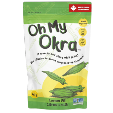 Whole okra, expeller pressed sunflower oil, sugars (organic granulated coconut flower blossom nectar, tapioca maltodextrin), sea salt, spices, lemon peel powder, onion powder, yeast extract, garlic powder, white distilled vinegar, citric acid, silicon dioxide (anti-caking agent), lemon oil