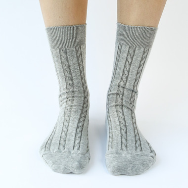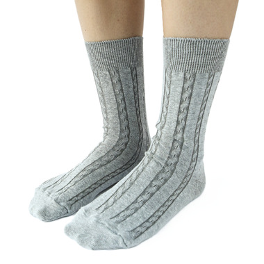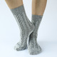 Cable knit dress socks make a subtle entrance, whether dressing for work or slay. Made in neutral and off-beat colours, the socks are knit with contrasting yarns to amplify their cable knit texture. Granite is created with a combination of a medium and dark grey.