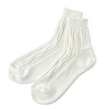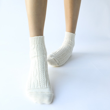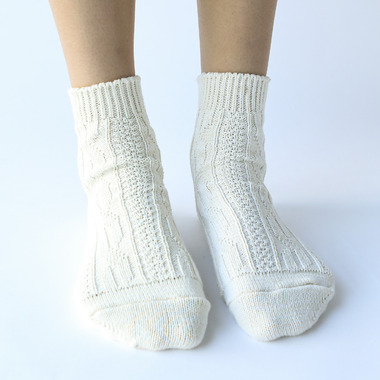 Jenny ankle socks are a midweight cotton sock with a pronounced cable knit texture and retro appeal. Okayok socks are knit on low-tech machines that are over 50 years old, which lends to their vintage quality and timeless aesthetic.