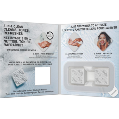 Directions: 1. SOAK Gently add water, let dissolve. 2. ACTIVATE The rich, creamy lather. 3. WASH Massage onto face, rinse.