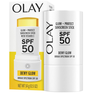 Level up your skin care routine with this fragrance-free, lightweight face sunscreen stick. With or without makeup, Olay Glow & Protect SPF 50 Sunscreen protects your skin from sun damage while giving you an instant dewy glow. Water and sweat resistant for 80 minutes, this face sunscreen stick is easy to reapply even over makeup. The lightweight formula has Vitamin C. It is dermatologist recommended Broad Spectrum UVA/UVB protection with a host of other benefits, including: SUNBLOCK protection from sun damage CONVENIENCE of a twisting stick, allowing easy, on-the-go reapplication PREVENTION to help you decrease the risk of skin cancer.