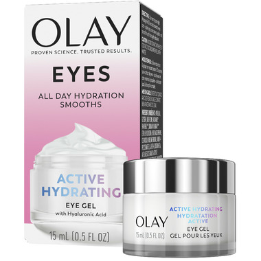 Olay Active Hydrating Gel Hydrating Eye Cream is formulated with ingredients that are great for your skin and help with dark circles, wrinkles, and puffiness. The Hyaluronic Acid regulates water within skins surface cells, the Niacinamide retains moisture and helps surface cell turnover, and the Vitamin B5 replenishes your skin barrier.