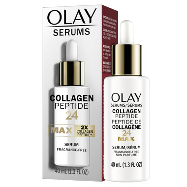 - COLLAGEN PEPTIDE TO THE MAX: Olay's expertly formulated Collagen Peptide 24 Serum is now available in MAX concentration with 2X* the Collagen Peptide (*vs base Collagen Peptide 24)