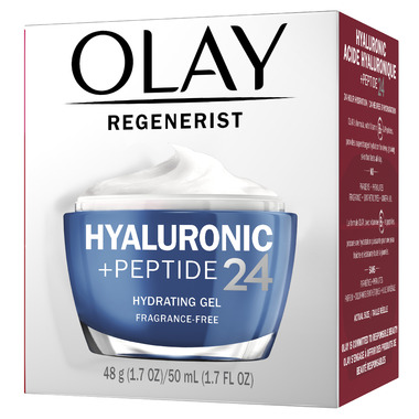 Supercharge your hydration for radiant skin with Olay’s Hyaluronic + Peptide 24 formulas. Olay Regenerist Hyaluronic + Peptide 24 Gel Face Moisturizer hydrates 2X longer than a $400 cream. This fragrance-free, hydrating gel formula feels smooth to apply and absorbs quickly with no sticky or tacky feeling, so it can be worn seamlessly under makeup. With powerful ingredients including Hyaluronic Acid, Niacinamide, and Peptides, this gel moisturizer is Dermatologist tested and thoughtfully crafted to hydrate skin for 24 hours. To use, smooth evenly over cleansed face and neck, morning and night. With first use, you will feel instant hydration that lasts 24 hours. With two weeks of use, you will see visibly healthier-looking skin. With 1 month of use, you will see supple and radiant skin that glows. Olay Regenerist Hyaluronic + Peptide 24 Face Moisturizer is made with dermatologist-recommended Peptides, and made without synthetic dyes, fragrances, parabens, mineral oil, or phthalates. What’s not to love about long-lasting hydration? At Olay, we’re serious about our commitments. Our Olay Skin Promise to you is zero skin retouching in all advertising. Olay is the first mass skin care brand in the US to take this stance, because we know real beauty is honestly beautiful.