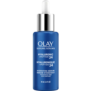 Olay Hyaluronic + Peptide 24 Serum absorbs quickly for supercharged, long-lasting hydration and dewy, glowing skin. This clean, fragrance-free, and lightweight serum is easy to rub in and glides under makeup without leaving behind a sticky or tacky feeling. It's crafted with powerful ingredients including Hyaluronic Acid, Niacinamide, and Peptides.