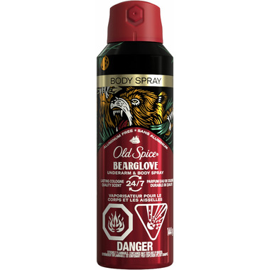 Deep in every man, beneath the people clothes and remembering how to drive, beats the heart of a wild animal. Old Spice Bearglove Body Spray keeps you smelling great all day. Old Spice aluminum-free body spray fights odor causing bacteria the moment you spray it on.
