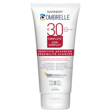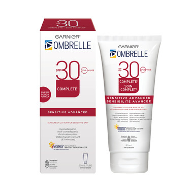 Sensitive Advanced SPF 30 combines Ombrelle?s patented Mexoryl filter, UVA+UVB broad-spectrum protection and a new sheer-touch texture for a superior sun protection formula. A complete care sunscreen for body and face, made suitable for sensitive skin. Sweat and water resistant for up to 80 minutes. Ombrelle?s patented filtering system with Mexoryl technology and other sunscreen filters provides broad spectrum UVA/UVB protection. Light, non-greasy texture with ultra-sheer technology that leaves skin feeling soft and non-shiny Hypoallergenic formula which is fragrance and colourant-free. Non-comedogenic, non-greasy and non-sticky.