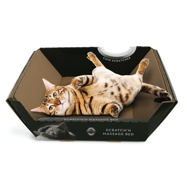 The cozy and comfortable Ripple Board Scratchҕn Massage Bedʓ cat bed covers all of a cats everyday needs, sleeping, scratching, massaging and chin scratcher. The Ripple Board Scratchn Massage Bedժ is made with cardboard and our patented Ripple Board massage surface that is treated with organic catnip oil. A decorative pattern covering the surface adds a designer's flair to this cozy bed.