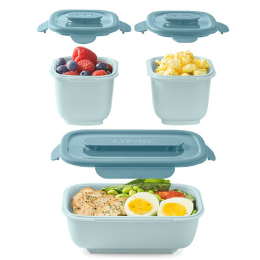 OmieGo is your go-to bento box for healthy meals on the move. With a smart stack-and-lock system and planet-friendly materials, it makes packing lunch simple, secure, and sustainable. The OmieGo Stack & Lock is made from plant-based bio-plastic that’s safe for the microwave, freezer, and dishwasher. The set includes one main container and two smaller snack containers that lock together securely for mess-free meals on the go. Add extra sets to create your own custom stack and pack exactly what you need.