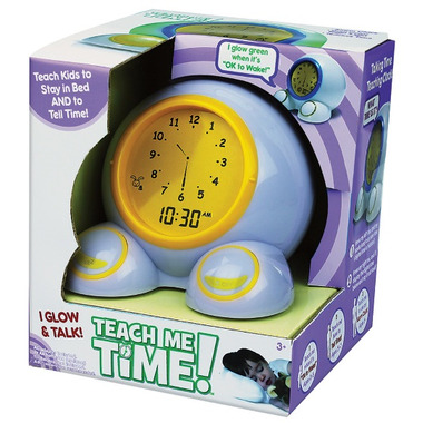 Teach Me Time! is an adorable, talking bedside alarm clock, time-teaching tool and dual-coloured night-light all in one.