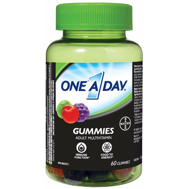 One A Day Gummies are specially formulated with vitamins, including vitamin E, an antioxidant for the maintenance of good health, and vitamin B12, which helps in energy metabolism in the body . All this in an enjoyable, fruit-flavoured gummy! Helps convert food to energy, helps maintain immune function, source of antioxidant for the maintenance of good health, helps to maintain eyesight, helps to maintain the body’s ability to metabolize nutrients, helps to maintain healthy skin, helps in the development and maintenance of bones.