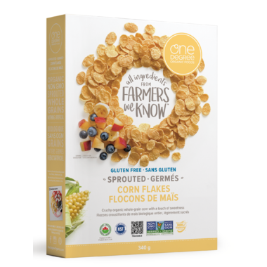 Crunchy flakes made with organic whole-grain corn and simple gluten-free ingredients. Honest, sprouted, and lightly sweetened with organic cane sugar.