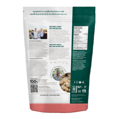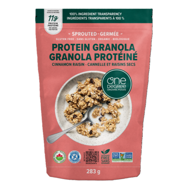 Sprouted gluten-free organic oats, Organic cane sugar, Organic expeller pressed sunflower oil, Organic faba protein, Organic raisins, Organic cinnamon, Unrefined salt, Tocopherols (vitamin E).