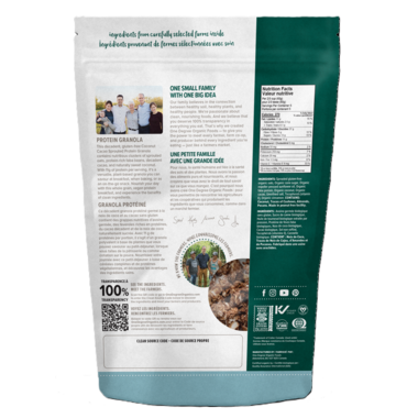 Sprouted gluten-free organic oats, Organic cane sugar, Organic expeller pressed sunflower oil, Organic faba protein, Organic coconut, Organic cacao, Unrefined salt, Tocopherols (vitamin E), Organic cinnamon.